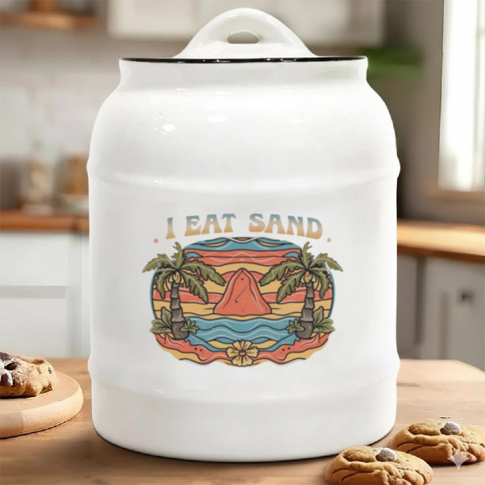 Buy eye-catching Groovy Psychedelic I Eat Sand and Desert Island Ceramic Cookie Jars or see more Ceramic Cookie Jars products at Printblur shop now to explore many surprises from our shop!