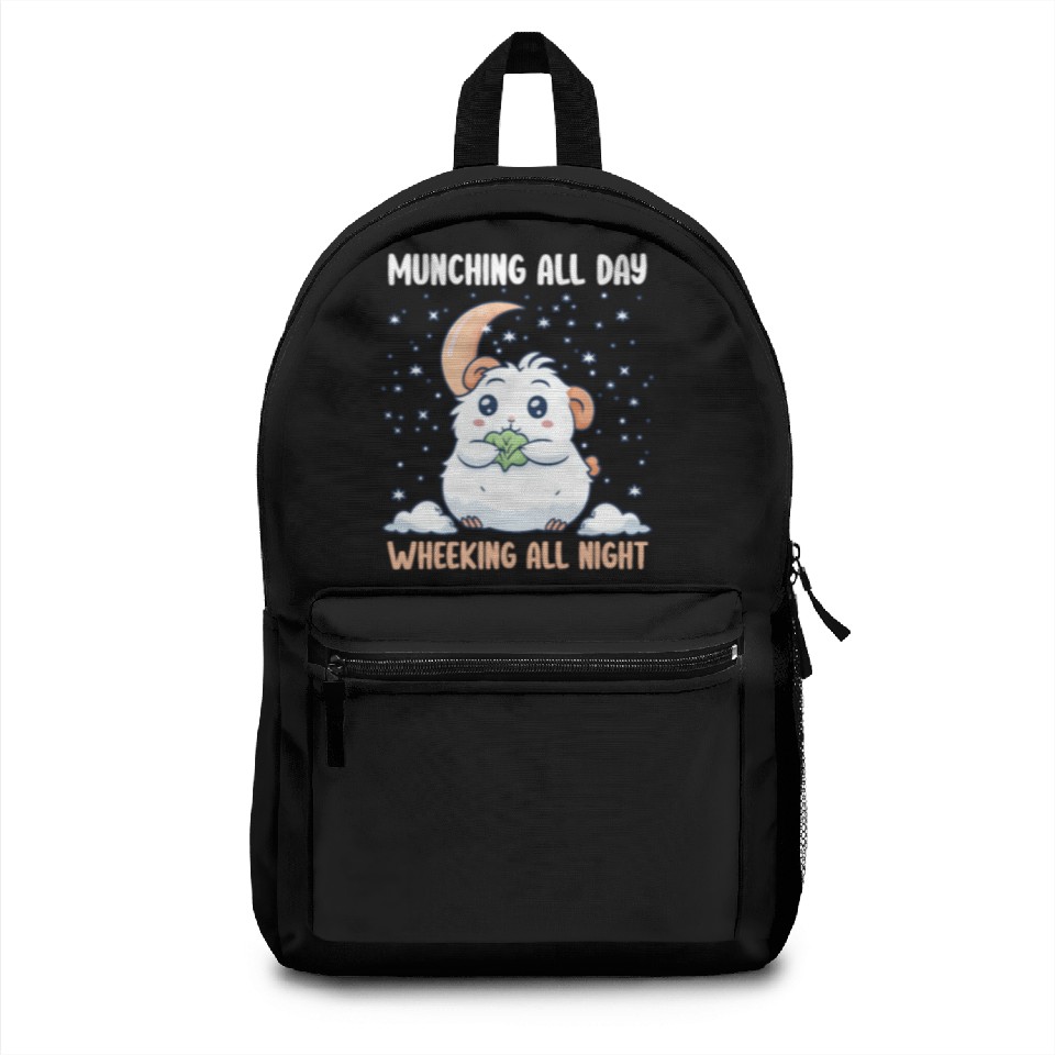 You are shopping for a stunning and trendy product Guinea Pig Munching All Day, Wheeking All Night Backpacks For Black belong theme Backpacks at Printblur