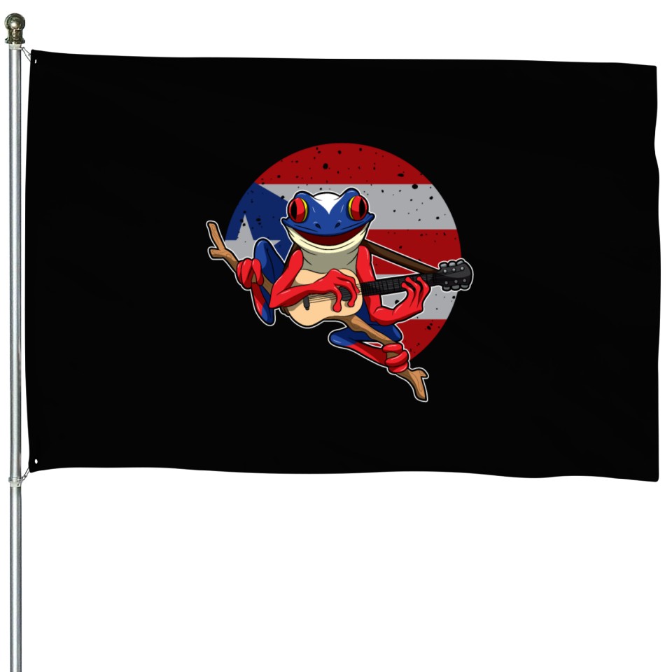 Shop for impressive Guitar Playing Coqui Frog - Puerto Rico Animal House Flags or see more House Flags products right now on Printblur to enjoy your happiness!