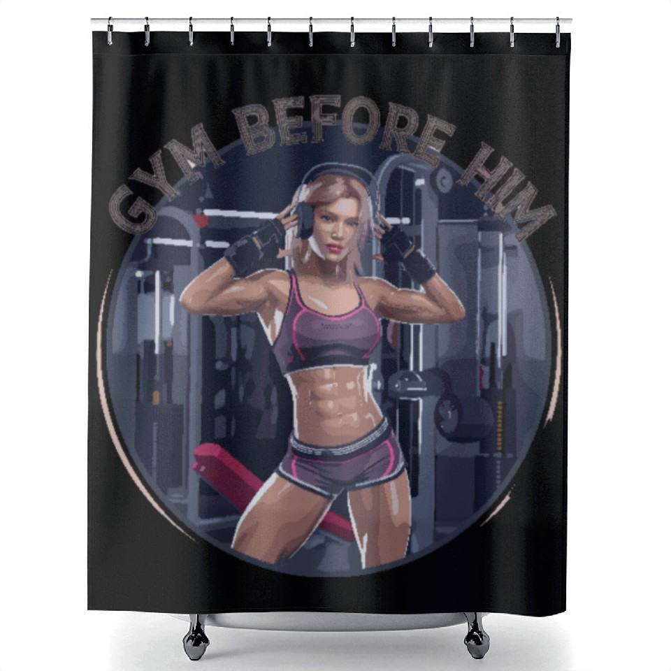 You are seeing a unique and impressive product Gym Before Him for a Sporty women Shower Curtains For Black belong theme Shower Curtains at Printblur