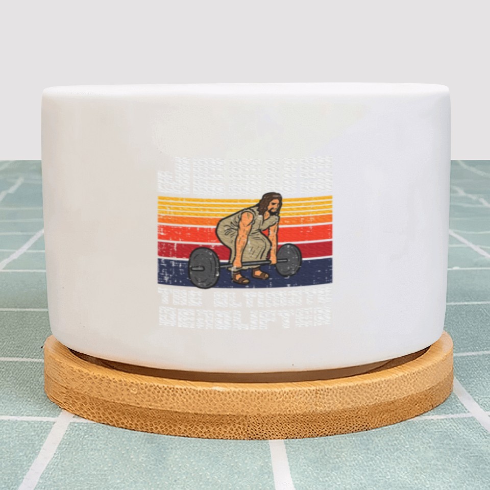 Shop for attractive Gym Jesus Ultimate Deadlifter Christian Workout Plant Pots or see more Plant Pots products on https://printblur.com right now!