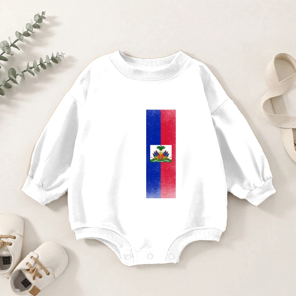 You're taking a peek at the product Haiti Design for proud Haitian Americans Baby Romper Sweatshirts For Kids WHITE belong theme Baby Romper Sweatshirts at Printblur