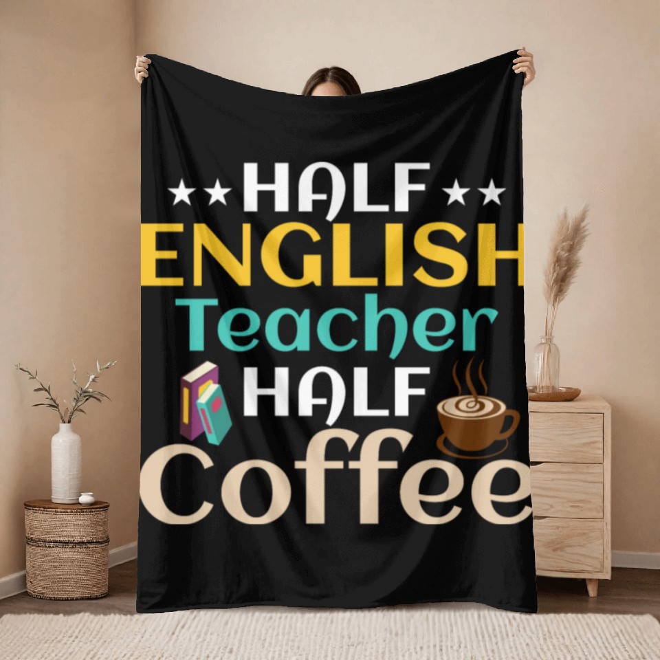 You're searching for a one-of-a-kind product Half English Teacher Half Coffee Language Grammar Throw Blankets For Black belong theme Throw Blankets at Printblur