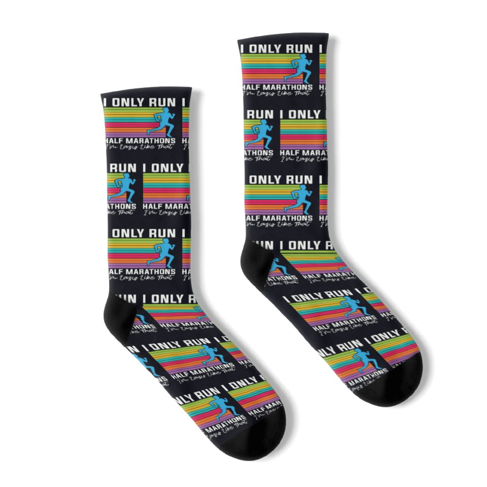 Shop for impressive Half Marathon I Only Run Half Marathons Athletic Socks or see more Socks products right now on Printblur to enjoy your happiness!
