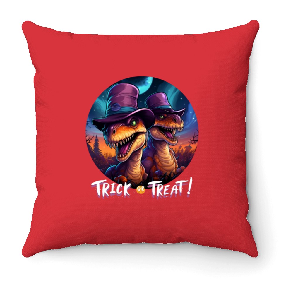 You're taking a peek at the product Halloween Dinosaur Velociraptor Trick or Treat Throw Pillows For Cover Only Red belong theme Throw Pillows at Printblur
