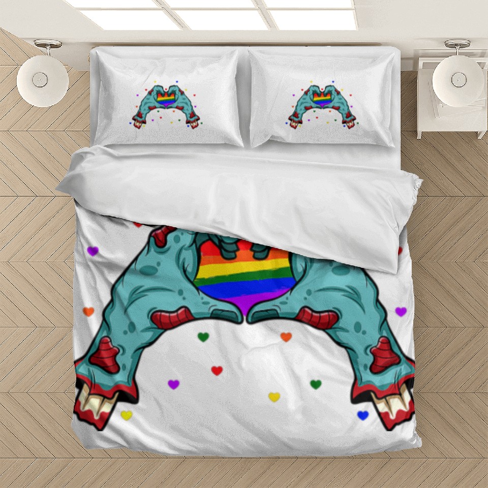 Buy eye-catching Halloween Hand Skeleton Heart LGBT Pride Rainbow Bedding Sets or see more Bedding Sets products at Printblur shop now to explore many surprises from our shop!
