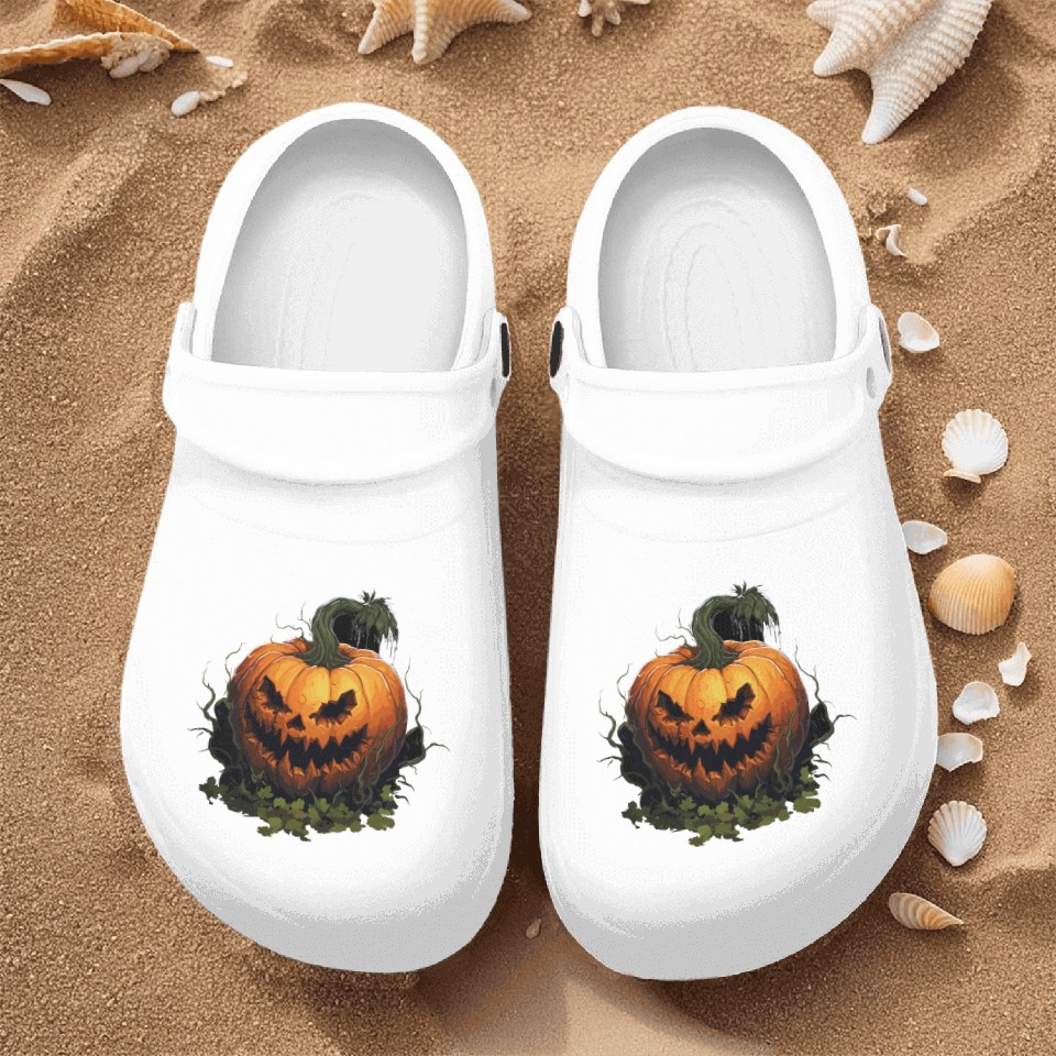 You're looking at the eye-catching product Halloween - Jack-O-Lantern Nurse Clogs For Men WHITE belong theme Nurse Clogs at Printblur