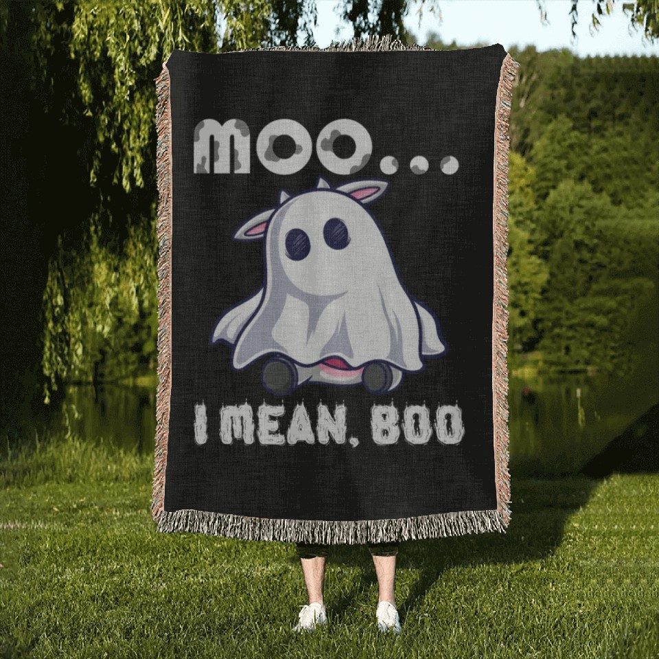 Own fascinating Halloween Moo, I Mean Boo Cow Farming Woven Blankets or see more Woven Blankets products now from Printblur shop to enjoy your shopping time!