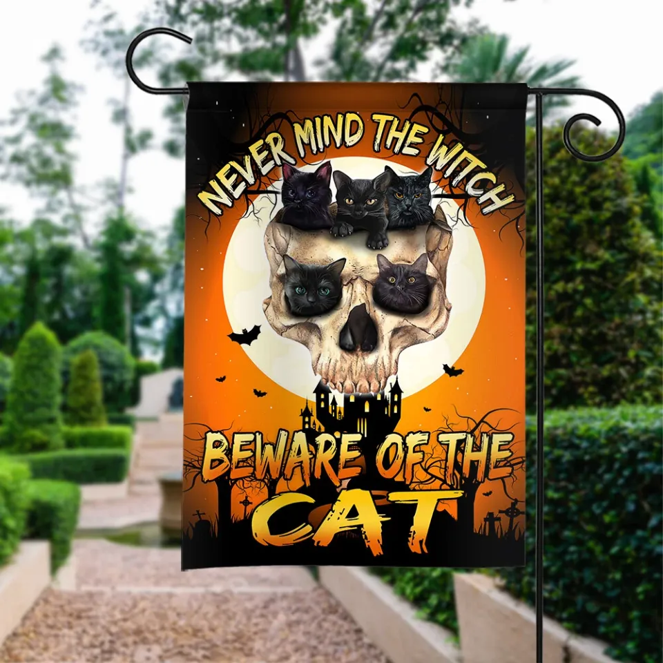 Own fascinating Halloween Never Mind The Witch Beware Of The Cat Flag, Cat Witch Flag or see more Garden Flags products now from Printblur shop to enjoy your shopping time!