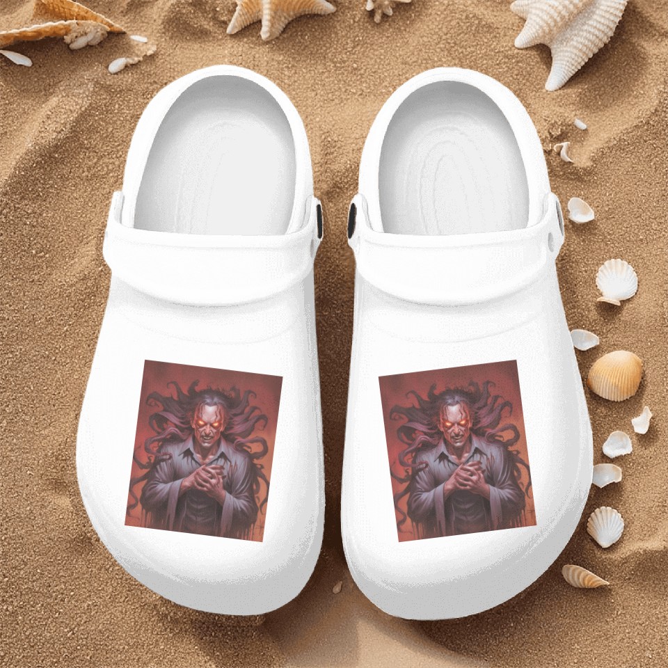 You're looking at the eye-catching product Halloween Night, Trick or Treat, Fright Night Nurse Clogs For Men WHITE belong theme Nurse Clogs at Printblur