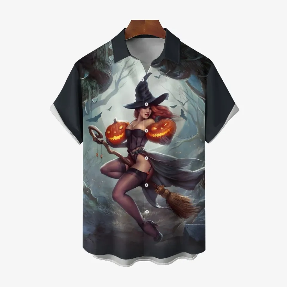 Shop for attractive Halloween Print Hawaiian Button Up Short Sleeve Shirt or see more Hawaiians products on https://printblur.com right now!