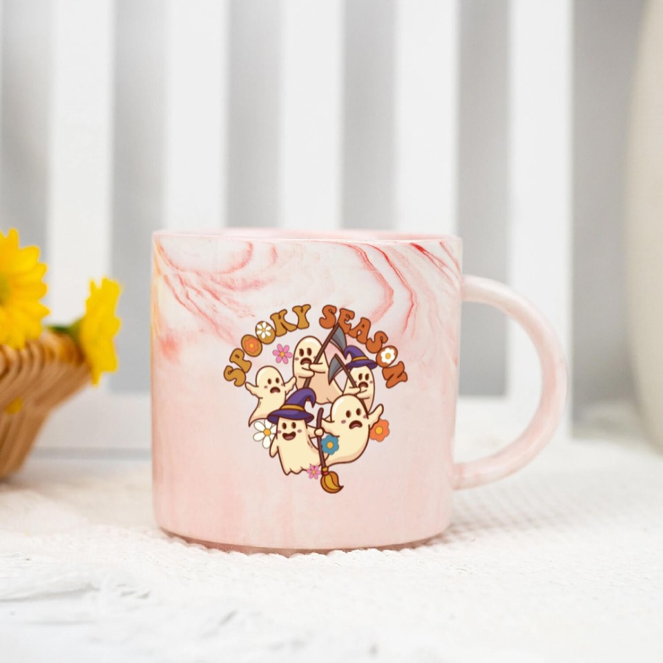 You are shopping for a stunning and trendy product Halloween Spooky Season Boo Ghost Grim Reaper Marble Mugs For Pink belong theme Marble Mugs at Printblur