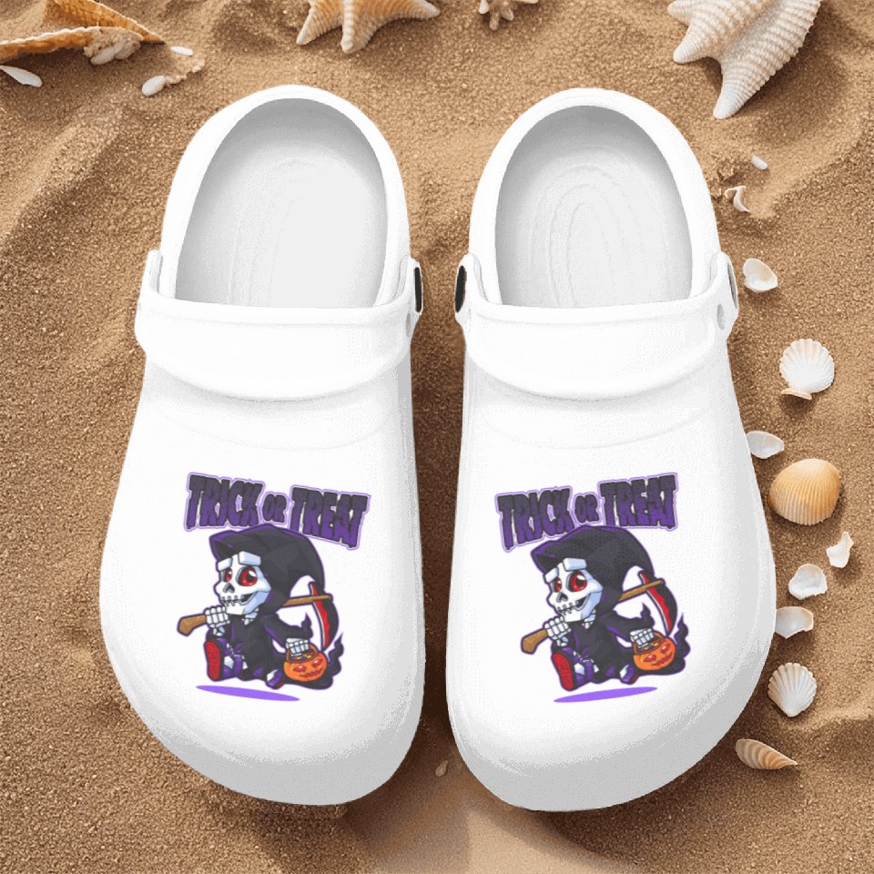 You're searching for a one-of-a-kind product Halloween Trick or Treat Grim Reaper Nurse Clogs For Men WHITE belong theme Nurse Clogs at Printblur