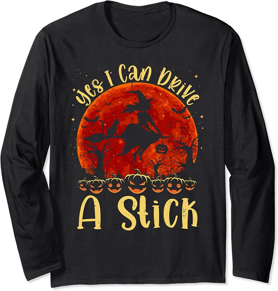 Buy stunning Halloween Witch Jack O Lantern Pumpkin I Can Drive A Stick Long Sleeve or see more Long Sleeves products at Printblur right now to receive many amazing discounts!