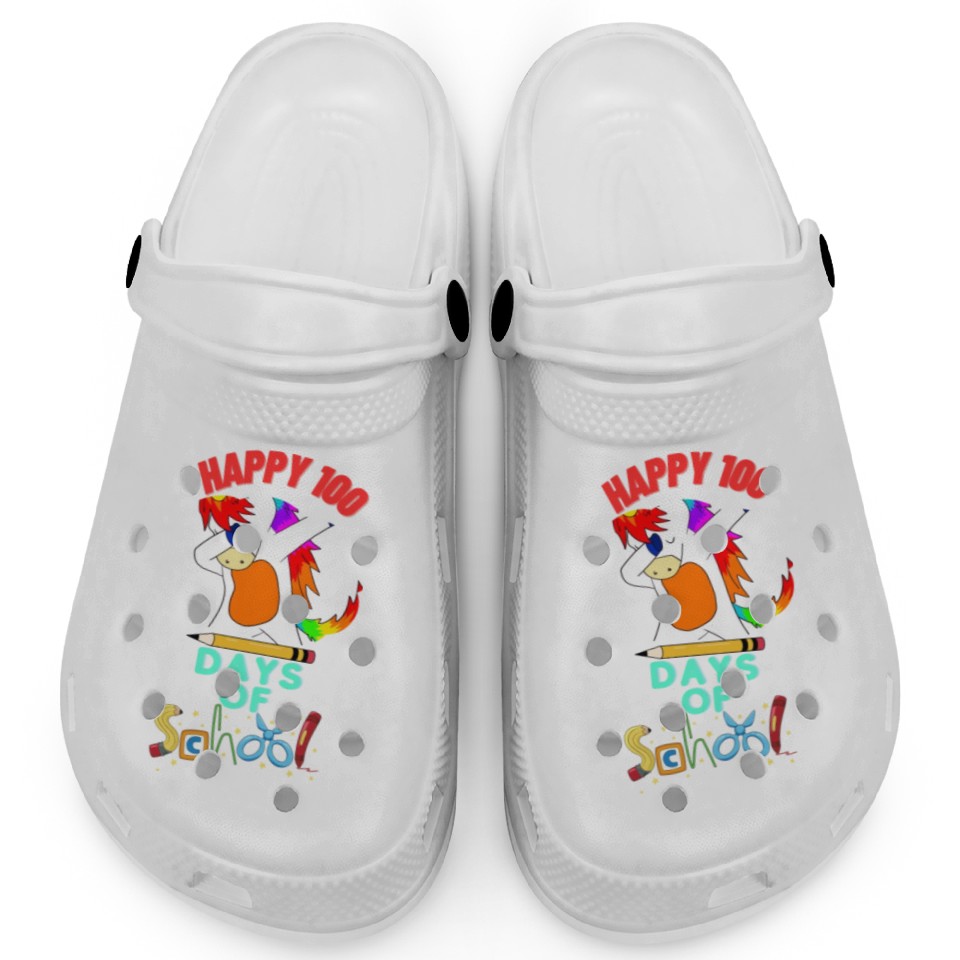 The product unique design you searched for is Happy 100 days of school Clogs For Kids WHITE belong theme Clogs at Printblur