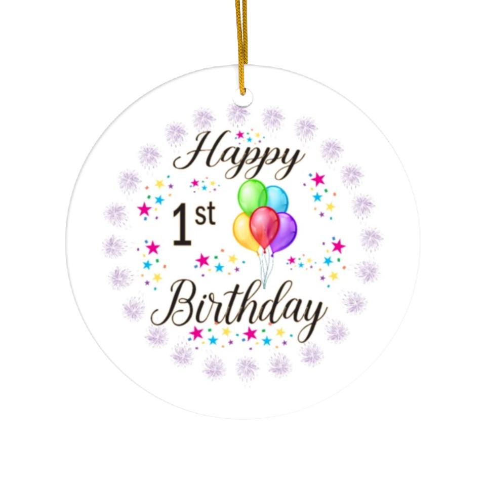 You are shopping for a stunning and trendy product Happy 1st Birthday with Balloons Ceramic Ornaments For WHITE belong theme Ceramic Ornaments at Printblur