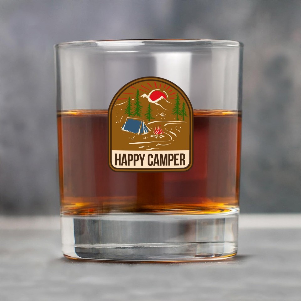 You're looking at the eye-catching product Happy Camper Camping Campfire Tent Rock Glasses For belong theme Rock Glasses at Printblur