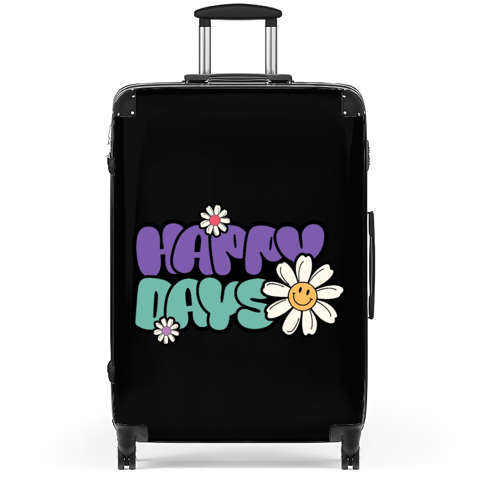 You are contemplating one of the best-selling products Happy Days | Groovy Retro Daisy Flower Suitcases For Black belong theme Suitcases at Printblur