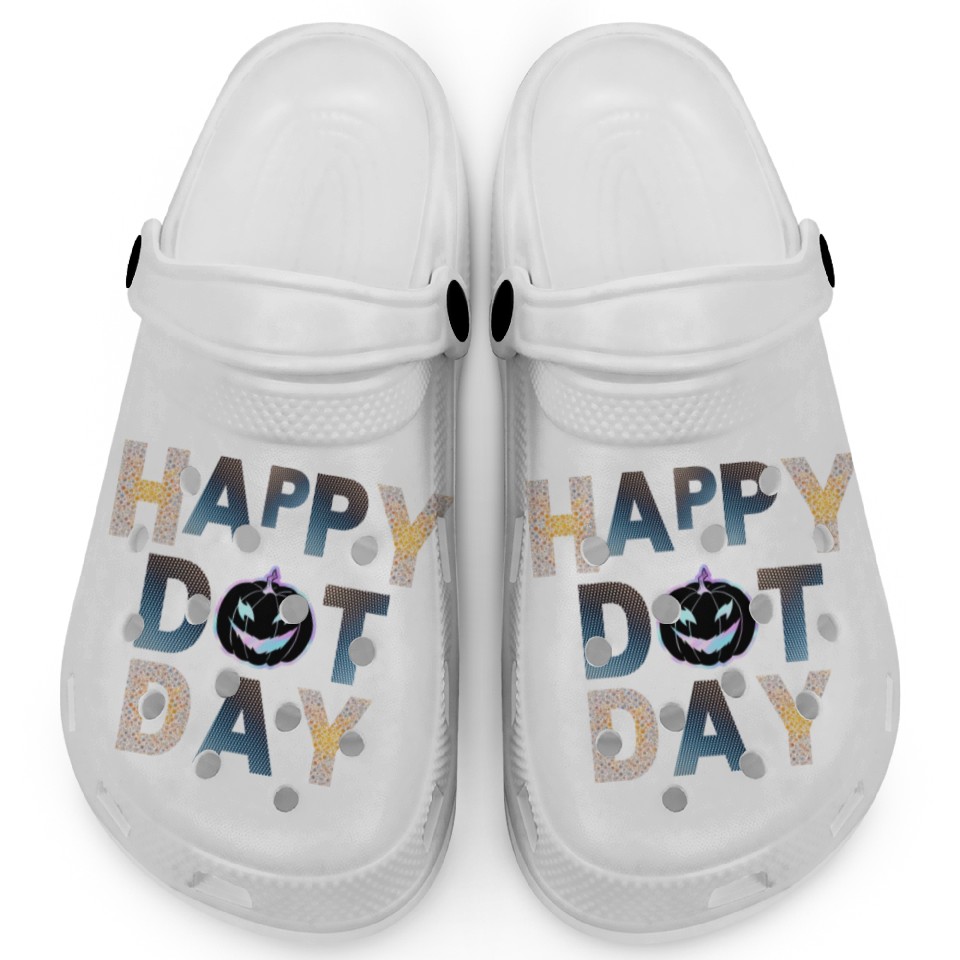 You are contemplating one of the best-selling products Happy dot day pumpkin polka dot Clogs For Kids WHITE belong theme Clogs at Printblur