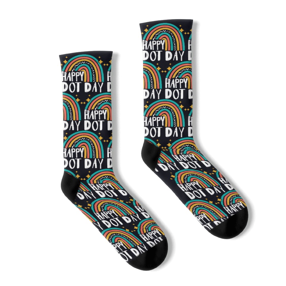 You are viewing an exclusive and elegant product Happy Dot Day Rainbow Polka Dot International Socks For Black belong theme Socks at Printblur