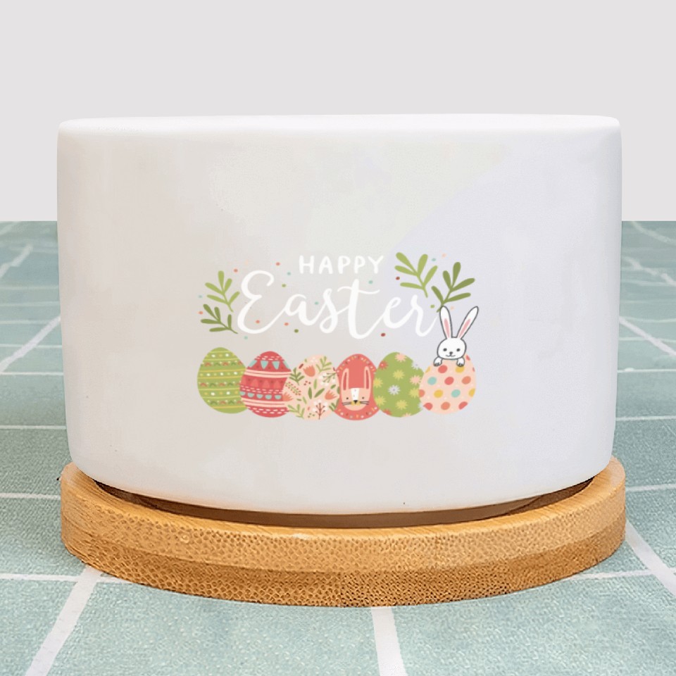 You are seeing a unique and impressive product Happy Easter Spring Flowers Bunny Rabbit Egg Hunt Plant Pots For WHITE belong theme Plant Pots at Printblur