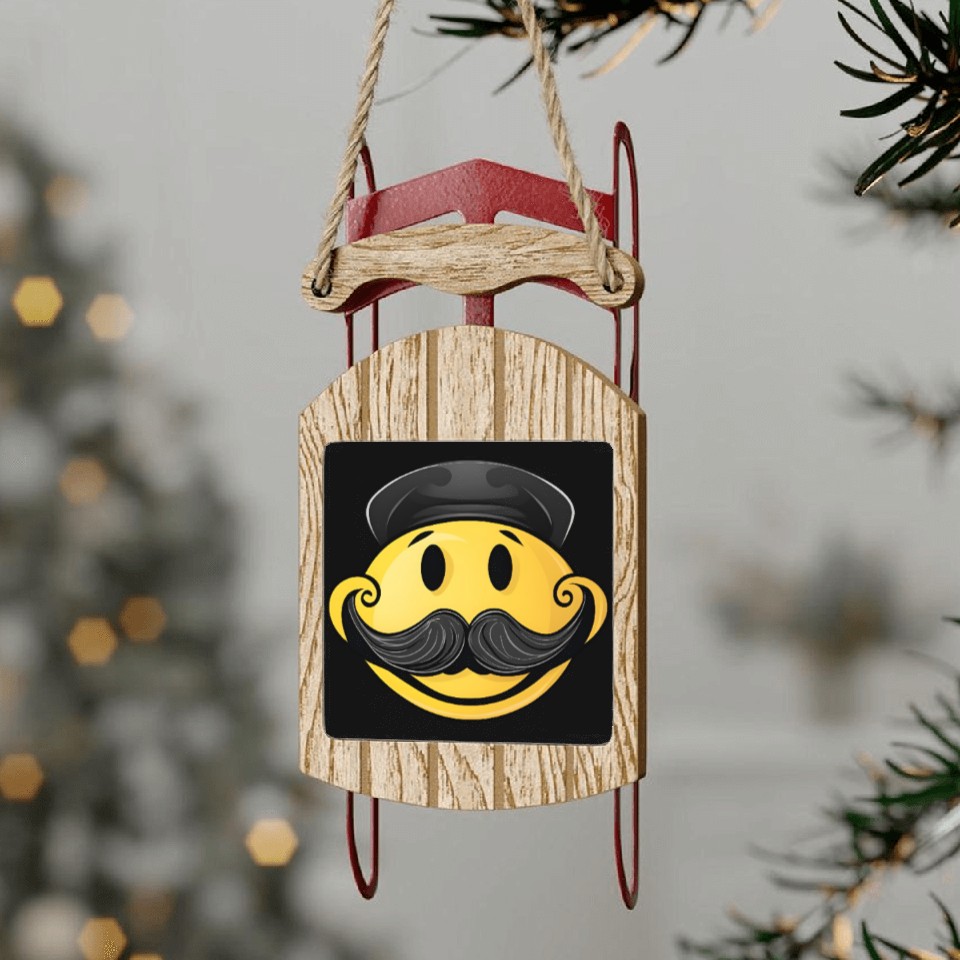 Own fascinating Happy face with mustache Sled Ornaments or see more Sled Ornaments products now from Printblur shop to enjoy your shopping time!