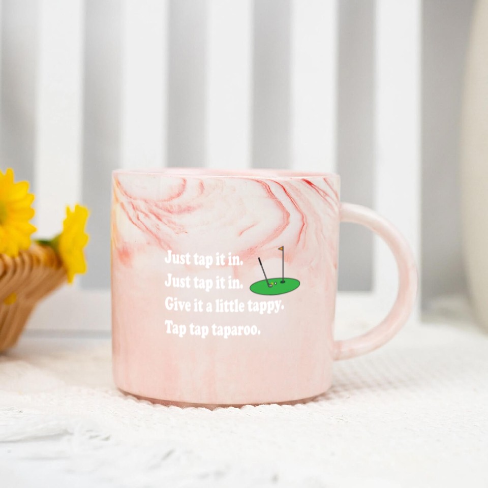 The item hot trend you're looking at is Happy Gilmore Quote - Just Tap It In Marble Mugs For Pink belong theme Marble Mugs at Printblur