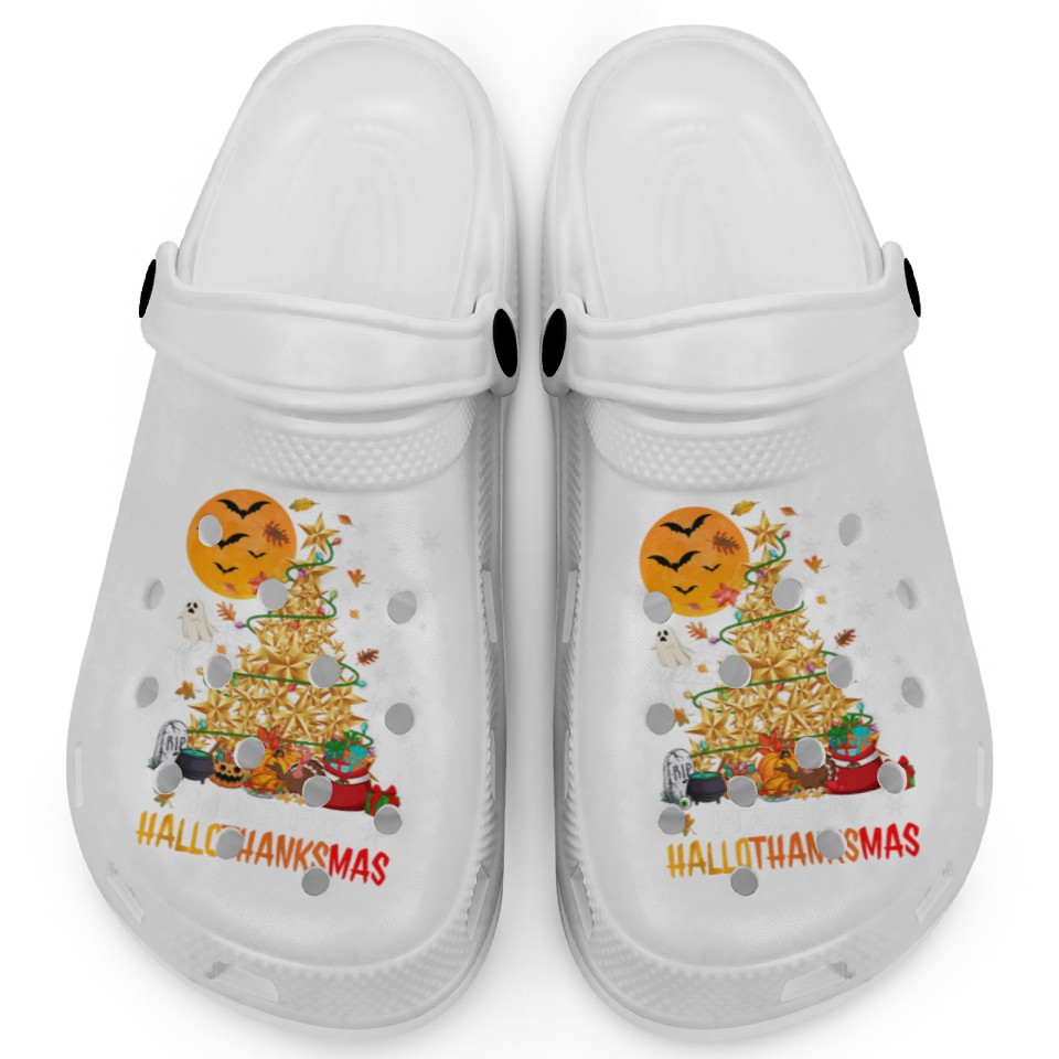 You are viewing one of the trendiest products HAPPY HALLOTHANKSMAS CHRISTMAS THANKGIVING Clogs For Kids WHITE belong theme Clogs at Printblur