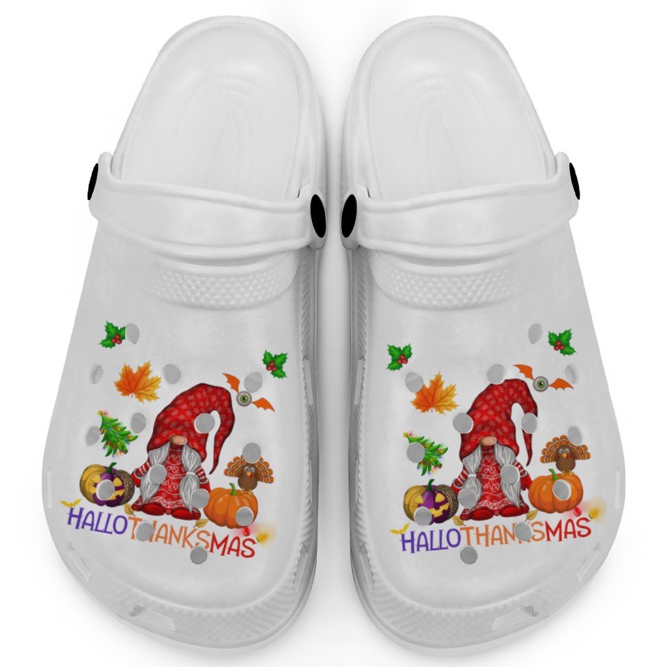 Shop for attractive Happy HalloThanksMas Gnome Clogs or see more Clogs products on https://printblur.com right now!