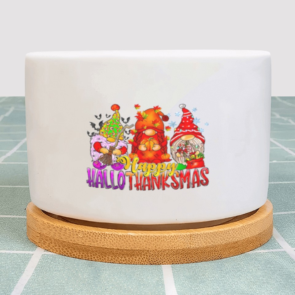 You're taking a peek at the product Happy Hallothanksmas Gnomes Lover Halloween Plant Pots For WHITE belong theme Plant Pots at Printblur