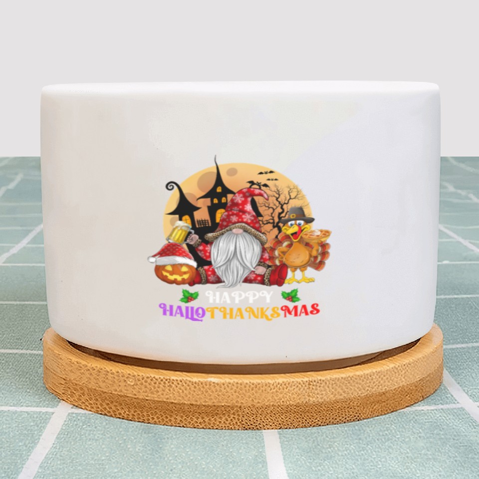 You are viewing one of the trendiest products Happy Hallothanksmas Halloween Thanksgiving Xmas Plant Pots For WHITE belong theme Plant Pots at Printblur