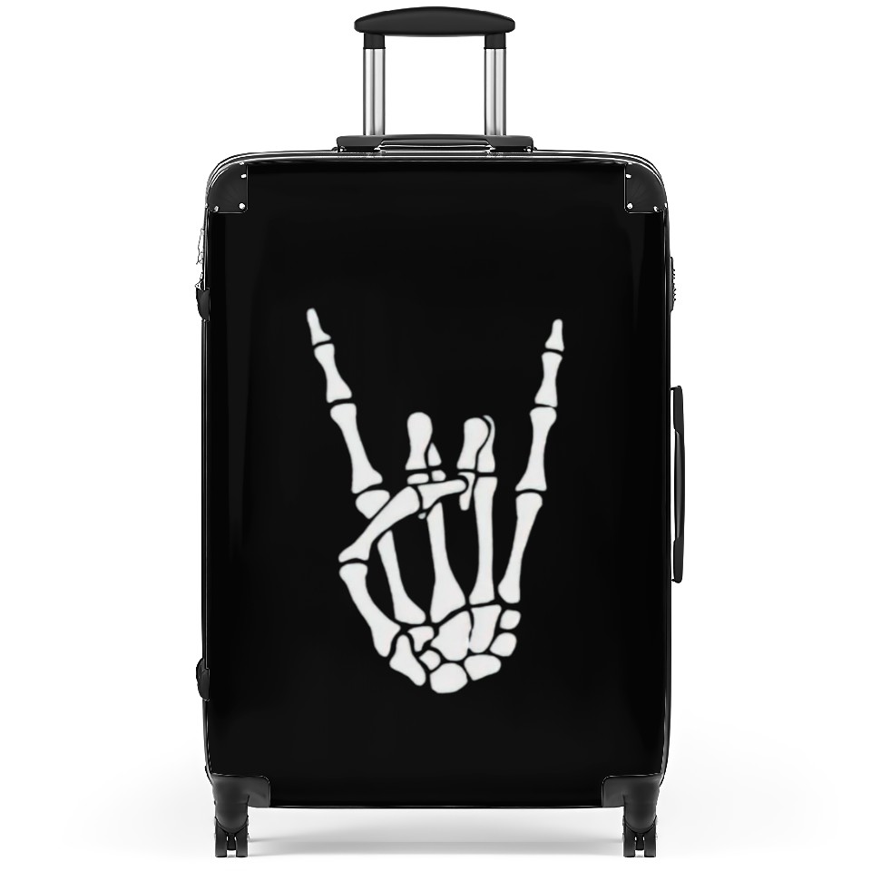 You are viewing one of the trendiest products Happy Halloween Skeleton Hand FunnyTrick or treat Suitcases For Black belong theme Suitcases at Printblur