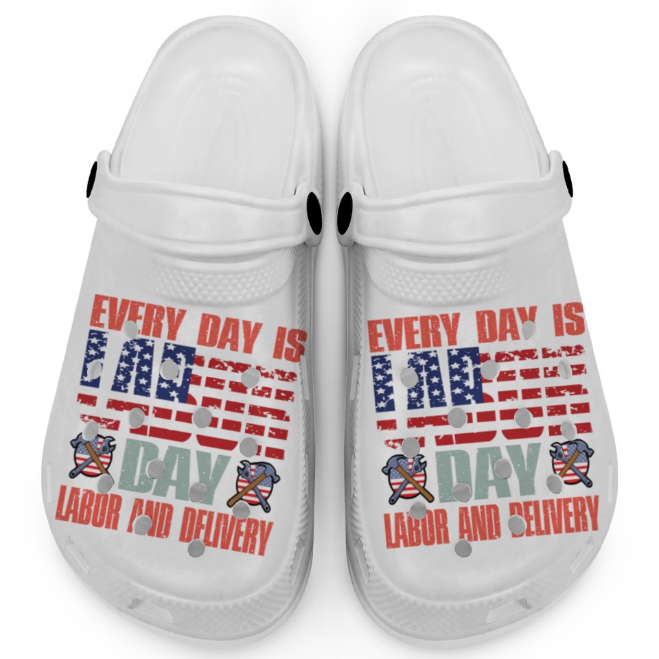 You are shopping for a stunning and trendy product Happy Labor Day Clogs For Labor Day Messy Bun USA For Kids WHITE belong theme Clogs at Printblur