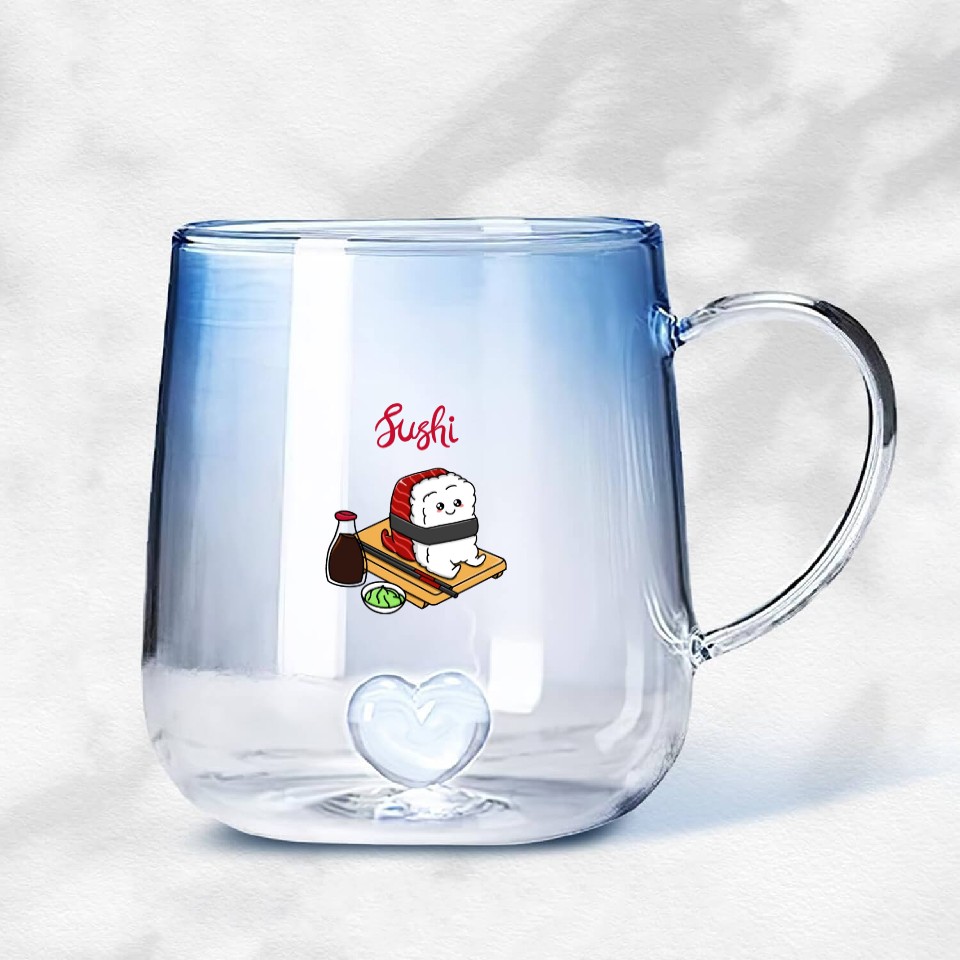 You are shopping for a stunning and trendy product Happy Tuna Sushi Gradient Glass Mugs For Blue belong theme Gradient Glass Mugs at Printblur