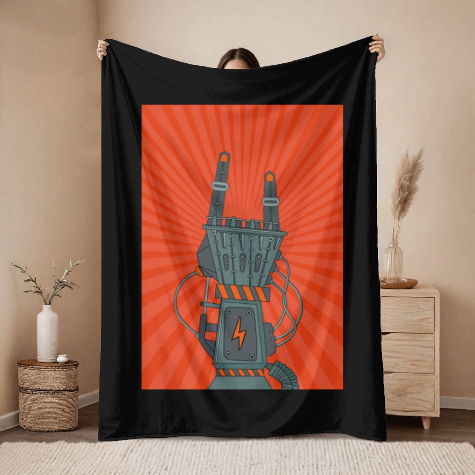 You are shopping for a stunning and trendy product hard rock horns robot Throw Blankets For Black belong theme Throw Blankets at Printblur