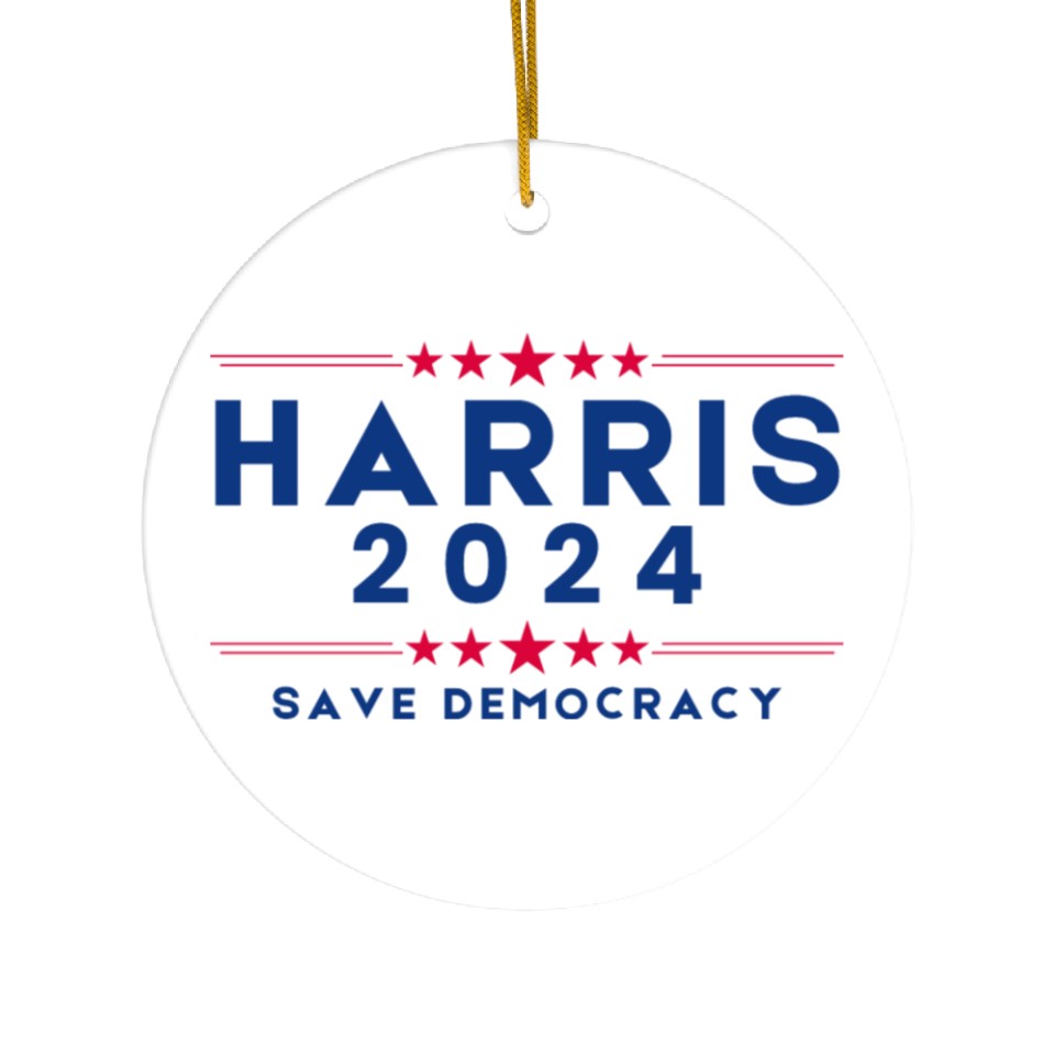 The item hot trend you're looking at is Harris For President 2024 Save democracy Ceramic Ornaments For WHITE belong theme Ceramic Ornaments at Printblur