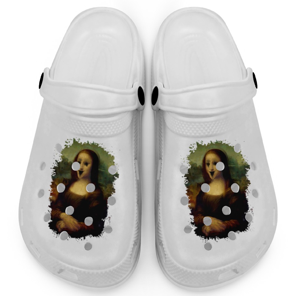 You're looking at the eye-catching product Haunted Mona Lisa Clogs For Kids WHITE belong theme Clogs at Printblur