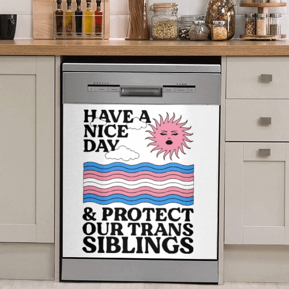 Own fascinating Have A Nice Day And Protect Our Trans Siblings Dish Washer Covers or see more Dish Washer Covers products now from Printblur shop to enjoy your shopping time!