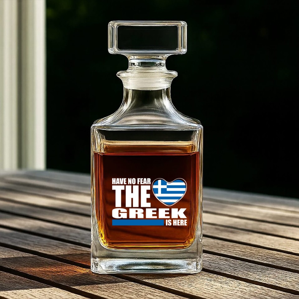 Have No Fear The Greek Is Here Whiskey Decanters