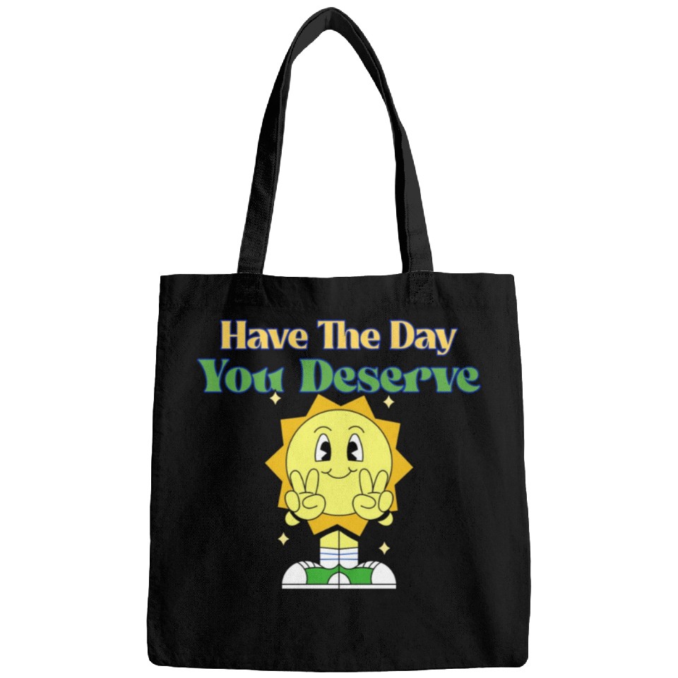 Have The Day You Deserve, sunny, motivational quot Bags