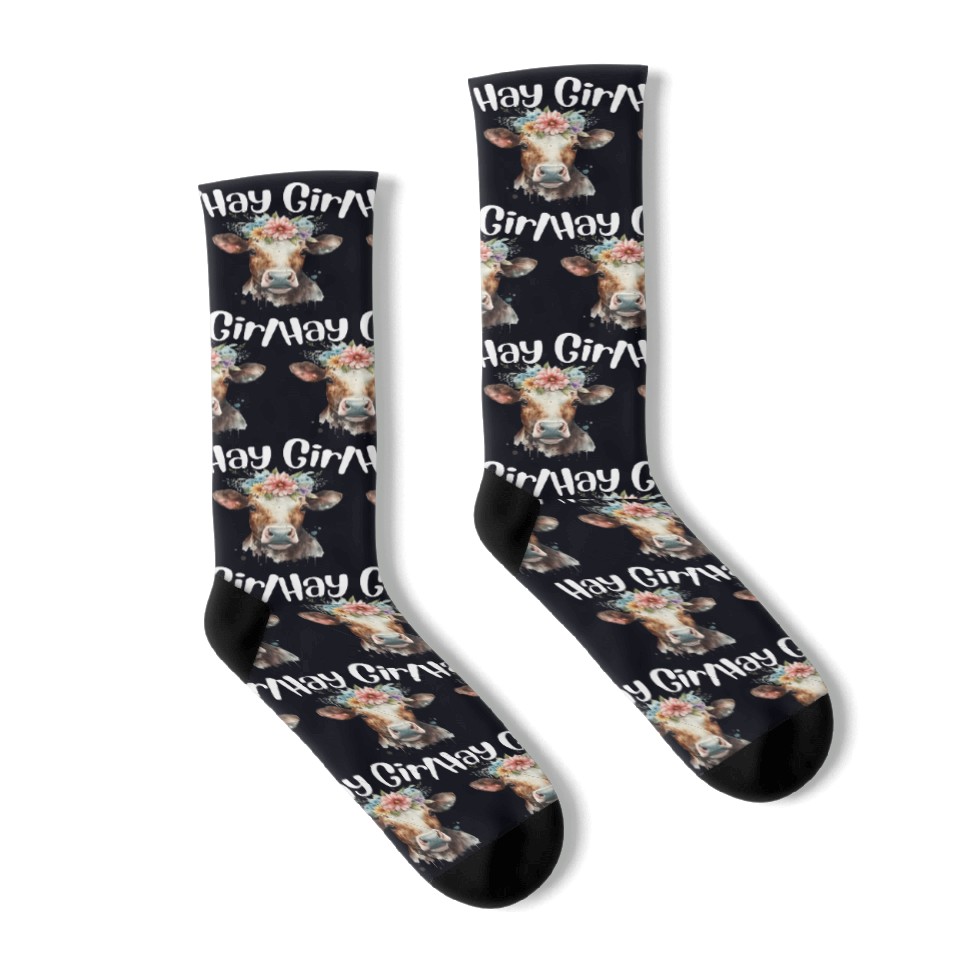 Buy eye-catching Hay Girl Farmer Gift Cattle Cow Lovers Socks or see more Socks products at Printblur shop now to explore many surprises from our shop!
