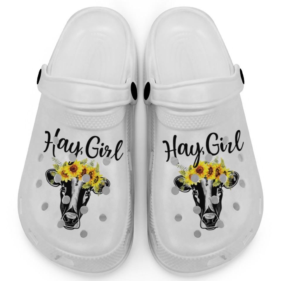 Shop for impressive Hay Girl Funny Cow Farm Sunflower Heifer Clogs or see more Clogs products right now on Printblur to enjoy your happiness!