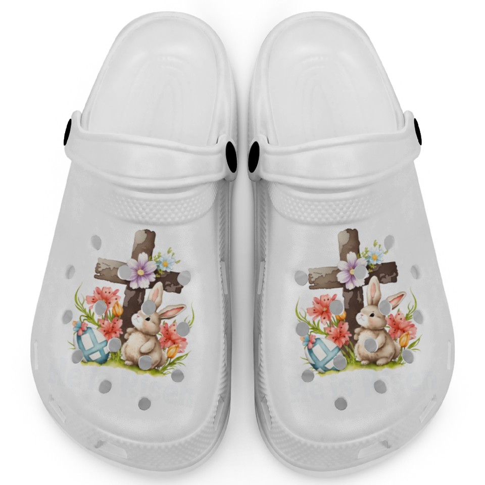 He Is Risen Cute Bunny Christianity Cross Clogs