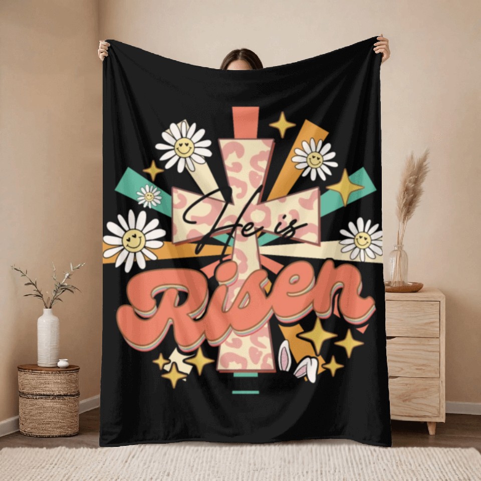 Own fascinating He is risen Mathew 28:06 Throw Blankets or see more Throw Blankets products now from Printblur shop to enjoy your shopping time!