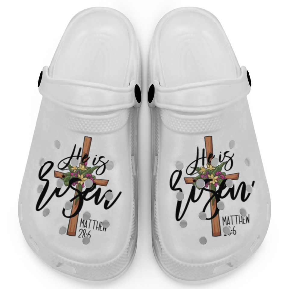 Shop for impressive He Is Risen Matthew 28:6 Christian Jesus Is Risen Clogs or see more Clogs products right now on Printblur to enjoy your happiness!