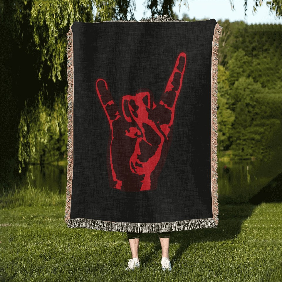 You are shopping for a stunning and trendy product Heavy Metal Fun Hard Rock Music Horns Hand Gesture Woven Blankets For Black belong theme Woven Blankets at Printblur