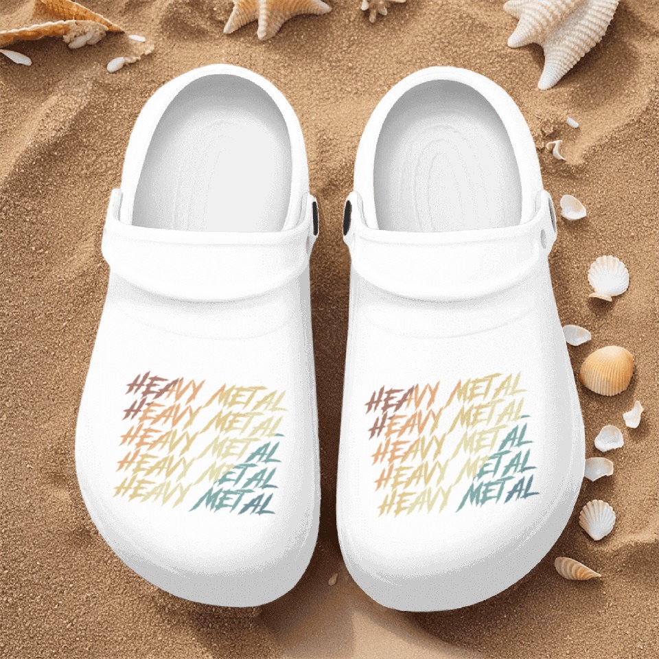 The product unique design you searched for is Heavy Metal Headbanging Band Genre Nurse Clogs For Men WHITE belong theme Nurse Clogs at Printblur