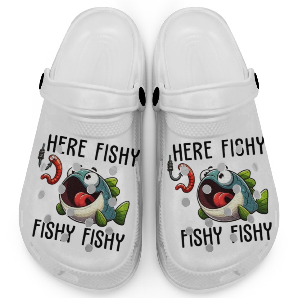Here Fishy Fisherman Fishing Lover Fish Worm Clogs