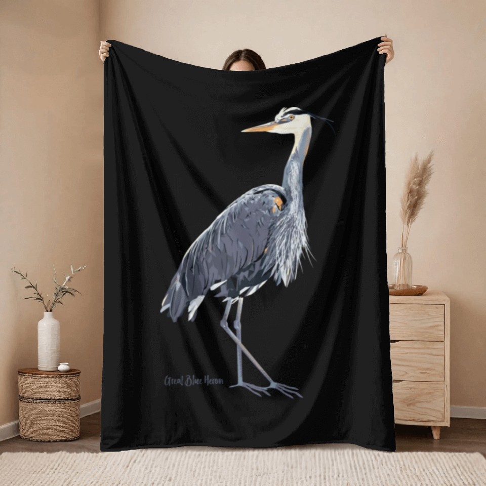 You are viewing an exclusive and elegant product Heron Art Birder Wildlife Bird Watching Throw Blankets For Black belong theme Throw Blankets at Printblur