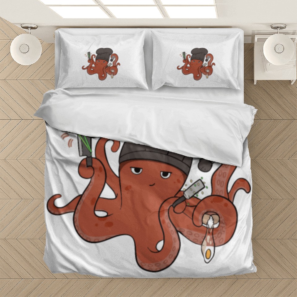 You're looking at the eye-catching product Hibachi Skills Chef Squid Octopus Bedding Sets For WHITE belong theme Bedding Sets at Printblur